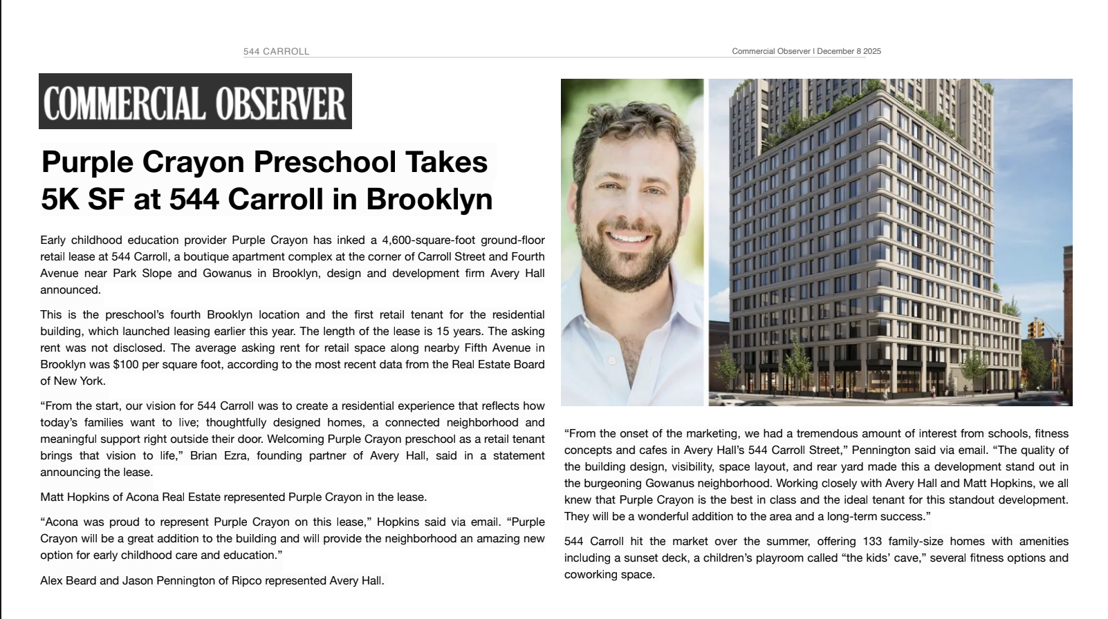 Purple Crayon Preschool Takes 5K SF at 544 Carroll in Brooklyn